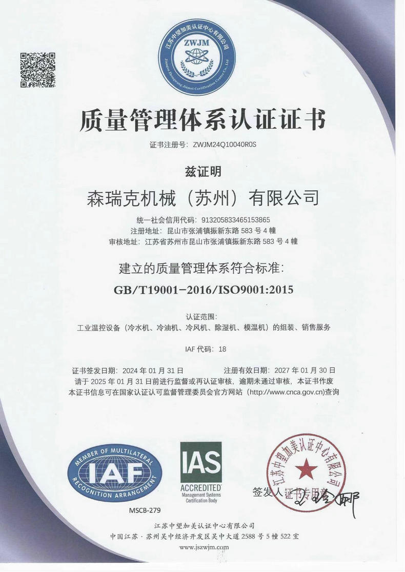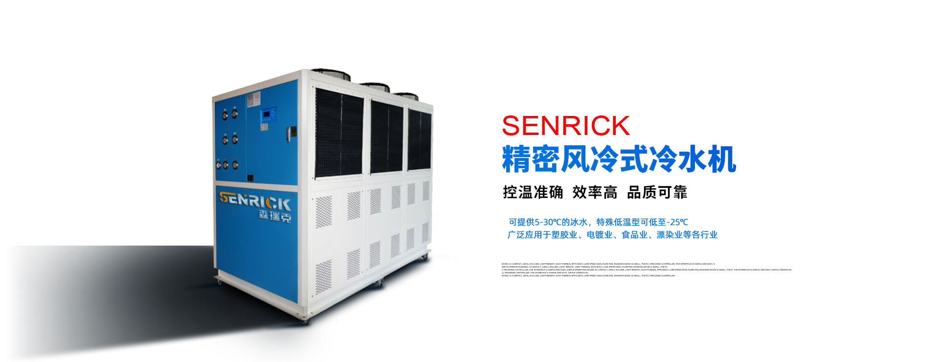 森瑞克機械(蘇州)有限公司(簡稱:SENRICK)是一家中外合作性企業(yè),引進技術,專注于工業(yè)制冷設備,工業(yè)溫控設備,非標制冷設備,集激光,化工,真空設備輔機等集研發(fā)、生產(chǎn)、銷售、服務于一體的的現(xiàn)代化科技企業(yè)。公司擁有完善的制造設備,先進的檢測系統(tǒng),獨立的加工、生產(chǎn)工藝,一支開拓創(chuàng)新專業(yè)有素的技術人才團隊,以及全面的質(zhì)量控制體系,為產(chǎn)品質(zhì)量的不斷優(yōu)化提供了強大的保障,以確保滿足不同市場的各種需求。經(jīng)過多年的努力企業(yè)相繼研發(fā)生產(chǎn)出了工業(yè)冷水機,工業(yè)冷風機,工業(yè)冷油機,工業(yè)機,低溫冷水機,低溫冷風機,低溫冷油機,螺桿式冷水機...